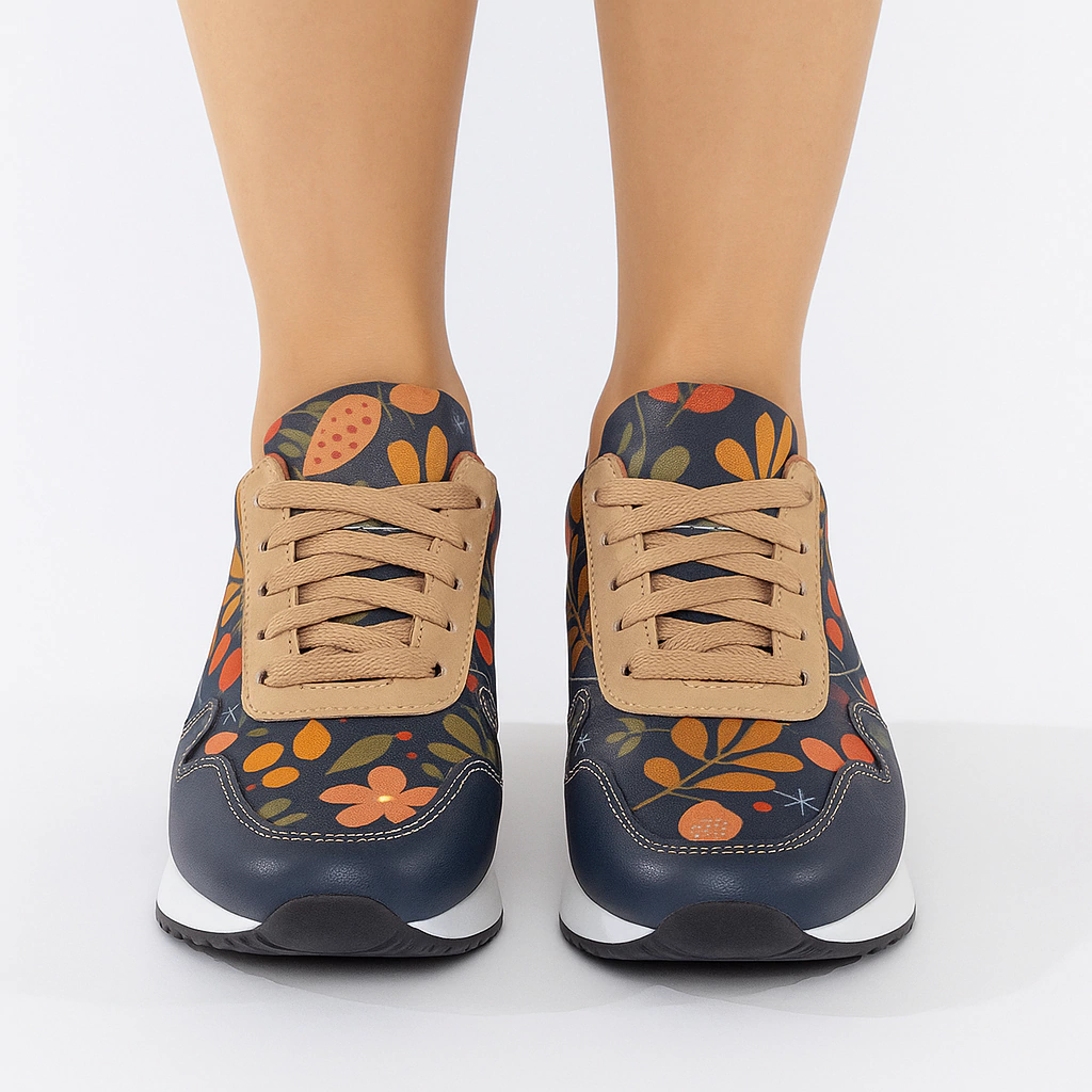 Minimalismo con carácter. Estas zapatillas están confeccionadas en en Tela de primera calidad, combinando textura, diseño y resistencia. Las flores distribuidas con elegancia realzan su estética urbana y moderna. La suela blanca alta aporta altura y estilo sin perder comodidad ni ligereza.